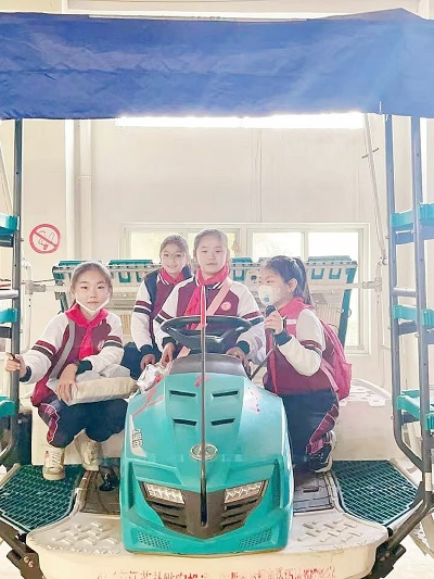 在讲解员的带领下,我们首先参观了各式各样的农业机械,然后了解了“水稻的一生”,我们深刻地体会到“一粥一饭当思来之不易”的道理。但让我印象最深刻的还是来到田间地头,真正体验了一把当“农民”的感觉。