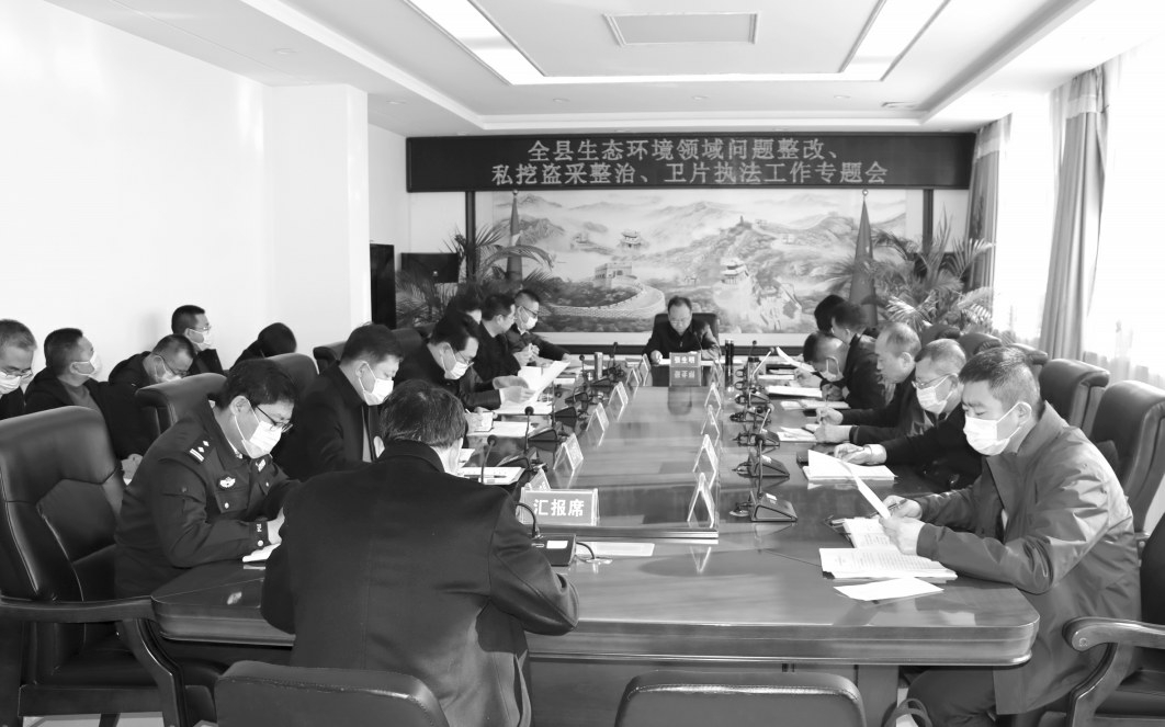 本报讯(记者 张瑞萍 郭耀宗)2月26日上午,我县在县委三楼会议室召开生态环境领域问题整改、私挖盗采整治、卫片执法工作专题会。县委书记张生明主持会议并讲话。县委副书记、县长温安娜,县委常委、雁门关镇党委书记白冰洋,政府副县长李海东出席会议。相关部门主要负责人,各乡镇党政负责人参加会议。
