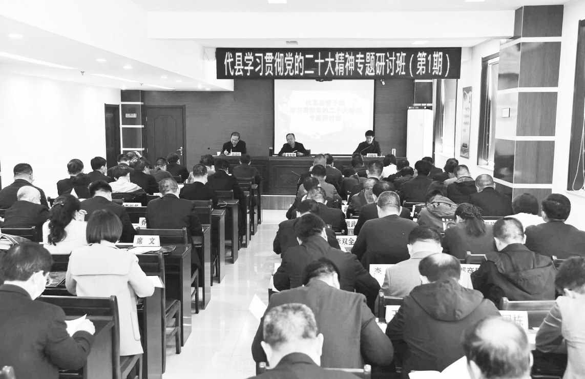 张生明指出,学习好、宣传好、贯彻好党的二十大精神是我们当前和今后一个时期的首要政治任务。要深入把握党的二十大精神的核心要义,深入把握习近平新时代中国特色社会主义思想的理论体系,笃信笃行、凝心铸魂;深入把握中国特色社会主义新时代取得的辉煌成就,捍卫“两个确立”、做到“两个维护”;深入把握党的二十大擘画的宏伟蓝图和重点任务,积极进取、矢志奋斗;深入把握全面从严治党的重大意义,心存敬畏之心、严守法纪底线;紧紧围绕全县改革发展稳定的重大问题、人民群众反映强烈的突出问题、党的建设面临的紧迫问题“学思践悟、精准把握”,联系县情实际、思想实际、工作实际、发展实际,不断从党的二十大精神中汲取养分,找准推进代县高质量发展的着力点和突破口,真正把眼下的事情办好,把代县的事业发展好,交出绝对忠诚的“政治答卷”。