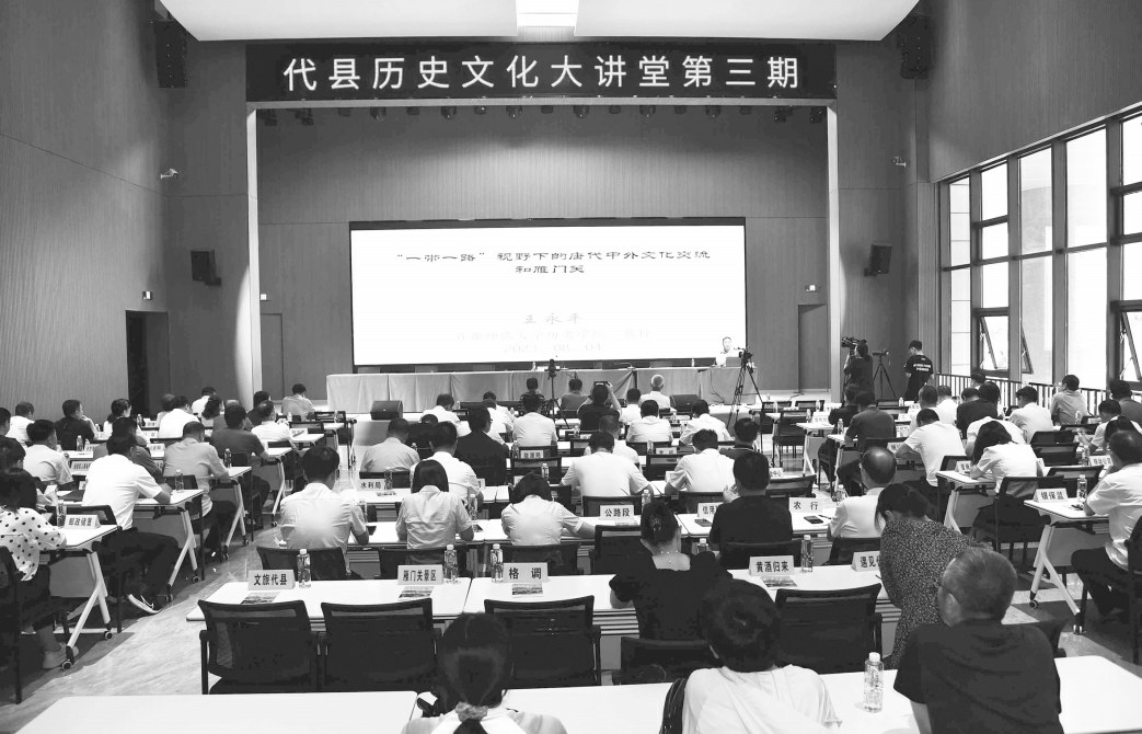 本报讯(记者张靖悦)8月4日,代县举办2023年第三期历史文化大讲堂,特邀首都师范大学历史学院教授、博士生导师、中国唐史学会副会长、中国武则天研究会副会长王永平讲授题为《“一带一路”战略视野中的雁门关与盛唐中外文化交流》的专题报告。在家县四大班子领导,各部门主要负责人,各乡镇党