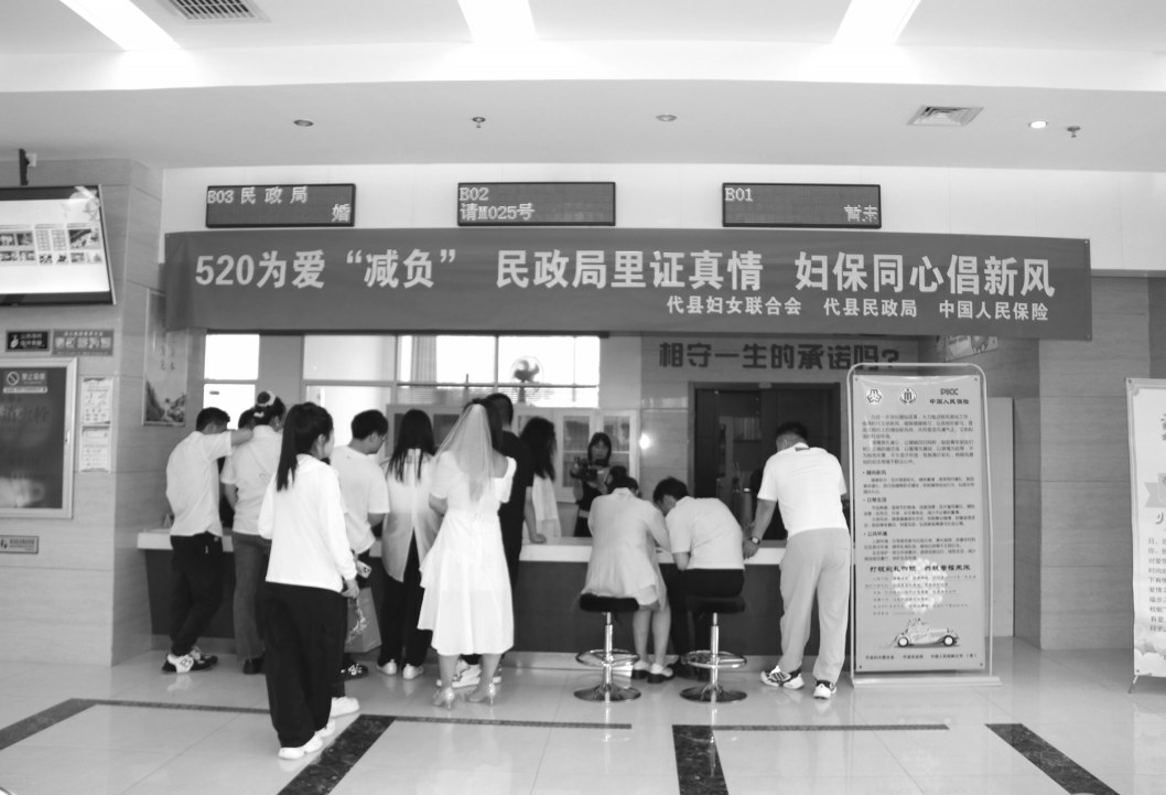 本报讯(记者 李伟蓉)5月20日,县民政局婚姻登记中心携手县妇联、中国人民保险策划举办“520为爱‘减负’民政局里证真情妇保同心倡新风”活动,为前来领证的新婚夫妻提供别具一格、意义非凡的领证体验,让这个特殊的日子更加难忘。