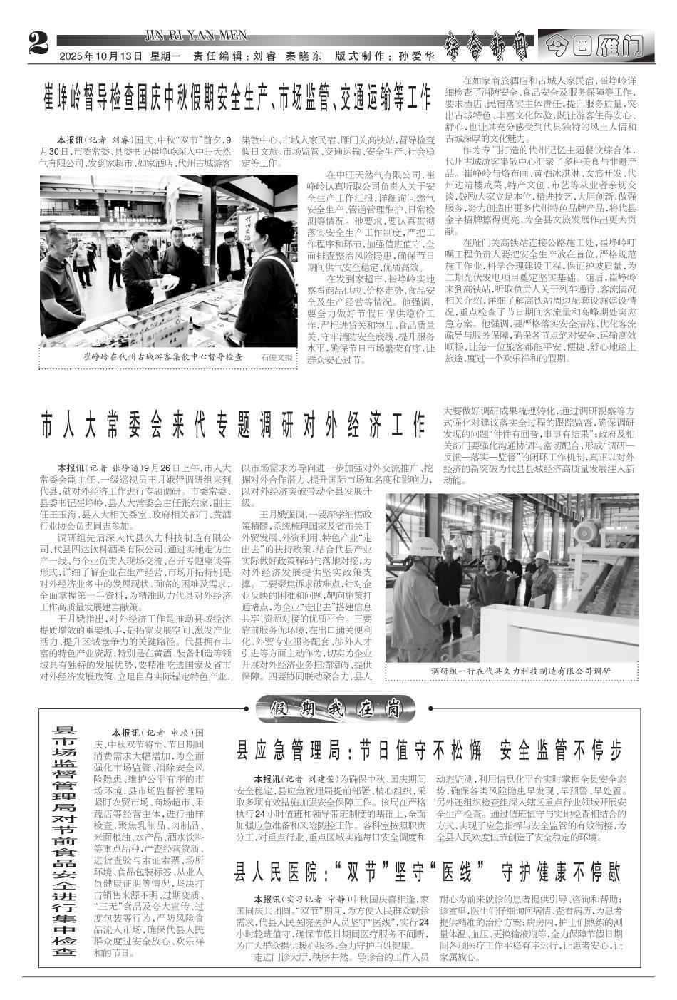 崔峥岭督导检查国庆中秋假期安全生产、…