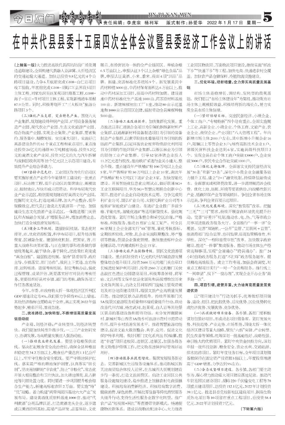 在中共代县县委十五届四次全体会议暨县…