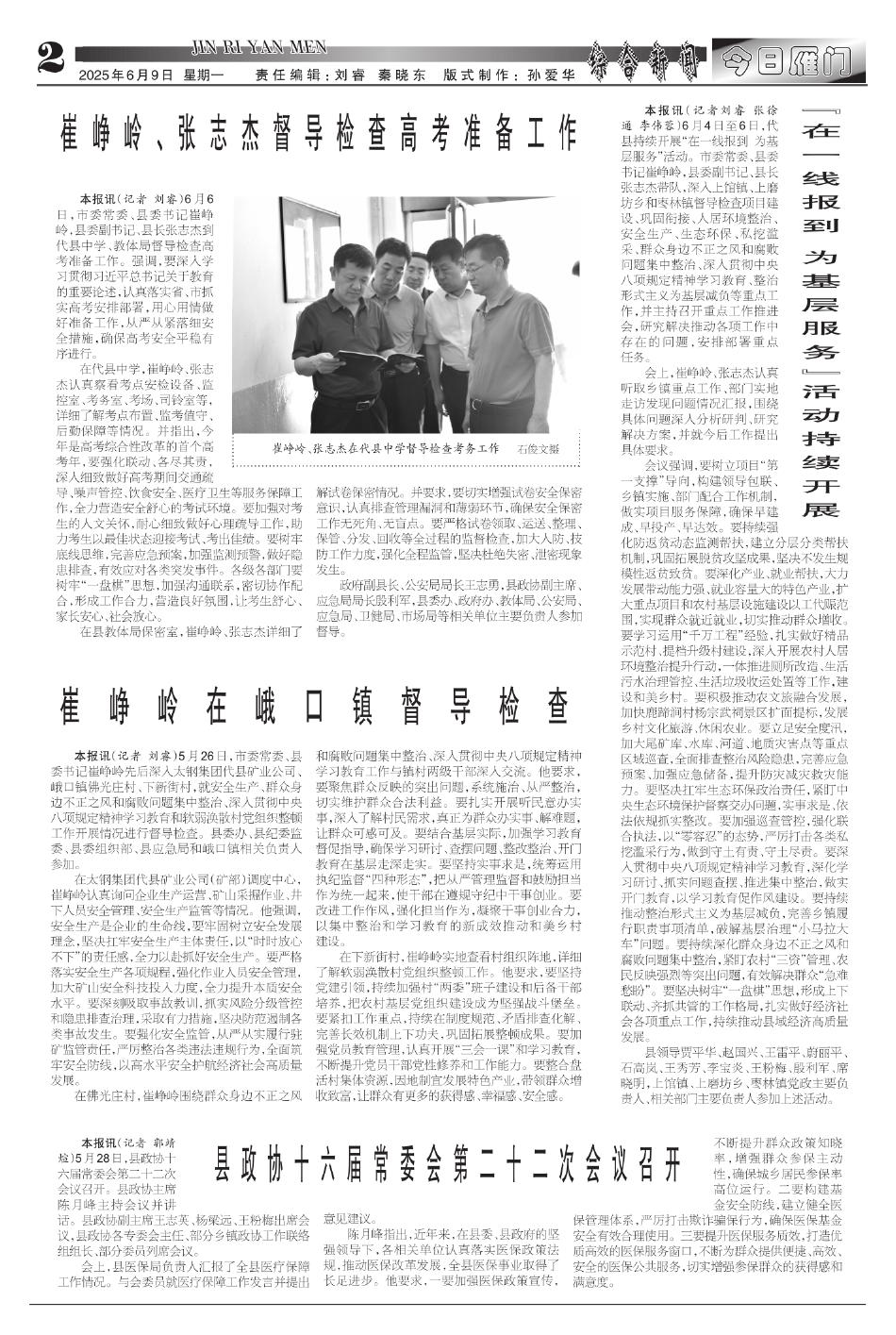 崔峥岭、张志杰督导检查高考准备工作