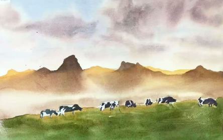 草原橙黄。晨露处处点缀隐在白云里的星群