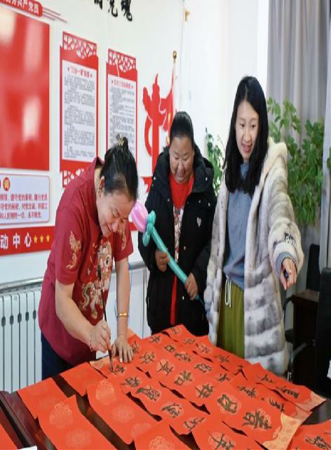 书写台与剪纸区的红纸、笔墨、剪刀等材料摆放整齐,窗边装点着气球与喜庆的饰物,处处洋溢着浓浓的年味与融融的暖意。