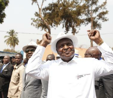 1月19日,在中非共和国首都班吉,中非共和国总统图瓦德拉在总统选举最终结果公布后向公众致意。