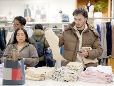 1月22日,在美国纽约一处购物中心,顾客挑选商品。