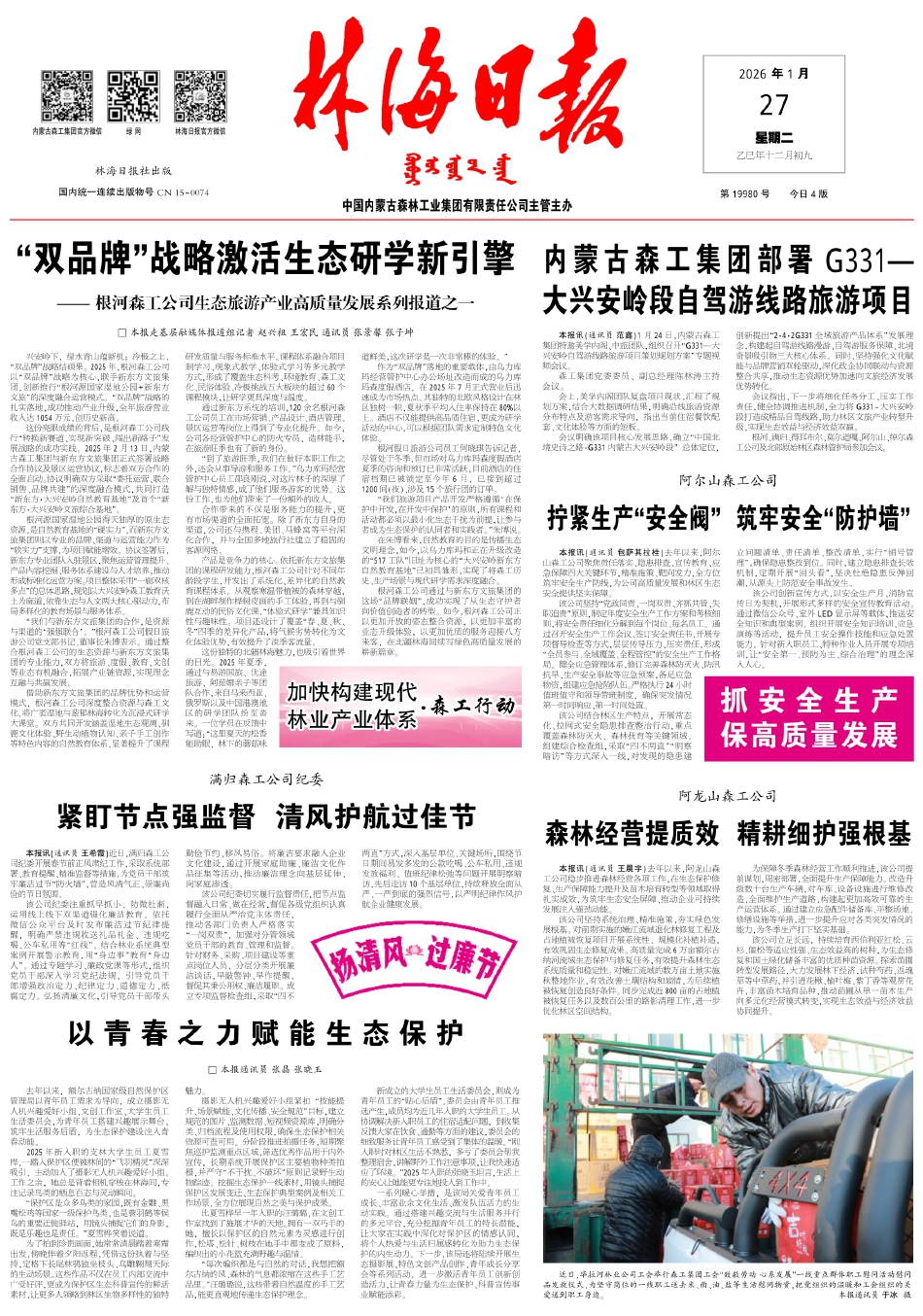 “双品牌”战略激活生态研学新引擎内蒙古森工集团部署G331—大兴安岭…拧紧生产“安全阀”筑牢安全“防护墙”森林经营提质效精耕细护强根基紧盯节点强监督清风护航过佳节以青春之力赋能生态保护图片新闻