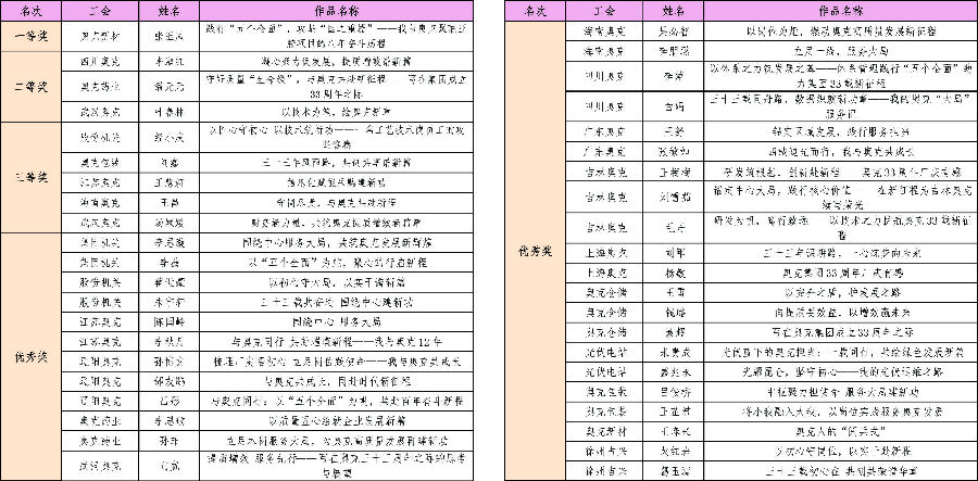 为庆祝奥克成立33周年,进一步激发全体员工团结奋进、攻坚克难的工作热情,集团工会以“围绕中心、服务大局”为主题,于9月15日-19日期间,组织开展了庆厂庆征文比赛。各分工会认真组织,精心遴选,共推荐报送了42篇征文作品参与评比。经过评委小组严谨、细致的初评和复评两轮评审,最终评选出一等奖、二等奖、三等奖共计9篇获奖佳作。现将本次征文比赛情况通报如下: