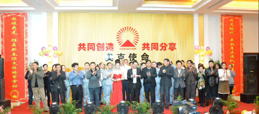 本报讯  “开足扬州,羊歌年庆团队精进步步高;放眼奥克,猴舞新春绿色经略节节甜。”2015年12月31日下午14:30,在猴年来临之际,奥克扬州公司举办了“庆元旦迎新春联欢会”,邀请农歌社区、肖山村、大连化工、南京港等合作共建单位共同参加。
