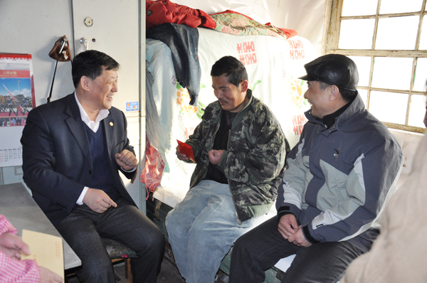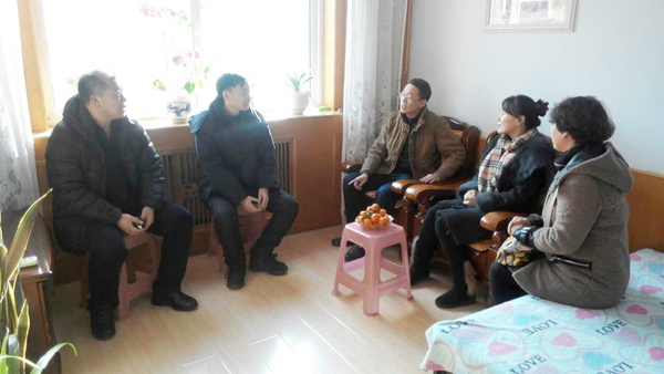 春节将至,集团党委牵挂工作在一线的党员的工作生活情况。2月4日,集团党委副书记齐甫家与辽阳公司党支部组织委员南江春来到党员、省工会会员代表郭振喜的家中看望。郭振喜的妻子早年下岗,多病,孩子读书,家中生活并不宽裕,可是郭振喜从没向组织叫苦抱怨,处处为身边的同事着想,2015年被推荐为省工会会员代表,参加了省工会代表大会,在代表团的座谈会上发言,为职工维护权益,为奥克争得荣誉,得到有关领导的高度赞扬。