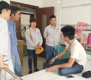 2016年5月3日上午,公司工会主席吴海英、生产设施部部长余小荣带领几个管理人员驱车前往茂名市人民医院,看望了生病员工黄湖荣,并转达了公司领导和公司工会对他的关怀,送上一份精美果篮,仔细询问了员工生病治疗情况后,公司领导叮嘱他要调整好心态,积极配合治疗、安心养病,并代表公司员工祝愿他早日康复。临走时,生病员工对公司领导、同事的关心表示衷心感谢,并表示会早日战胜病患,争取尽早回到工作岗位上回报公司。