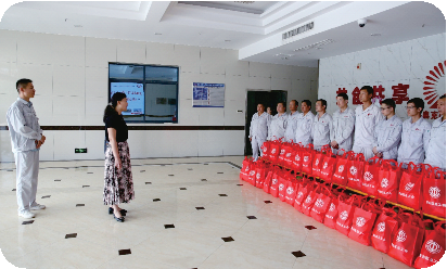 在刘主席的带领下,区总工会常务副主席曹建情一行参观了园区在我司建设的党员职工活动中心,对我司在工会建设上的工作表示肯定,对大家不畏酷暑坚守工作岗位的精神表示感谢,希望大家继续为公司的安稳运行多做贡献。随后将一份份慰问品(绿豆、白糖、毛巾、沐浴露、绿茶等)亲手送到职工手中,让大家能够在夏日炎炎中感受到清凉,创造一个更加温馨、幸福的环境。武汉奥克工会也会竭尽全力为职工服务,当好职工信赖的“娘家人”。