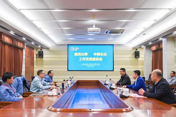 2月18日上午,奥克股份总裁朱宗将一行拜访中韩石化公司,受到了中韩石化公司党委书记、总经理刘百强,副总经理陈伟、叶卫东热情接待。在友好的交流氛围中,双方围绕行业现状、市场趋势、合作机遇与挑战等关键议题展开深入探讨并达成多项共识。