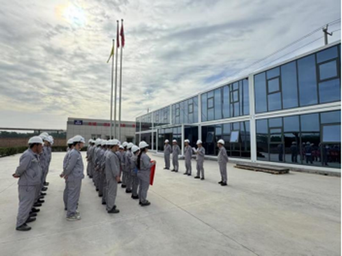本报讯 6月4日上午8时10分,陕西蓝石锂电新材料有限公司全体员工身着统一安全制服,齐聚厂区新建办公楼前,庄严宣誓。在铿锵有力的安全誓词声中,公司以“人人讲安全,个个会应急,查找身边安全隐患”为主题的2025年度“安全生产月”活动正式拉开帷幕,同时也标志着全国第24个安全生产月的到来。