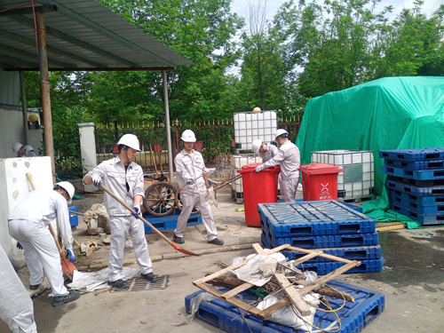 清晨8点,全体党员和入党积极分子精神抖擞,准时集结于行政楼大厅。随后,参与人员穿戴好劳动防护用品,手持铁锹、镰刀、扫把等工具,迅速奔赴劳动区域。在经历了前期排查和整改方案策划的前提下,本着“无费低费”方案先执行的原则,本次劳动的重点区域为公司物流门卫至危废堆场厂界沿线。活动中,党员们分工明确,配合默契:有的清理杂物和垃圾,有的规整备件摆放,有的铲除杂草和修剪枝叶。尽管天气炎热,但大家干劲十足,现场一派热火朝天的景象。经过近三个小时的奋战,沿线环境焕然一新,卫生死角得到彻底清理,备件摆放井然有序,为厂区安全清洁生产奠定了坚实基础。