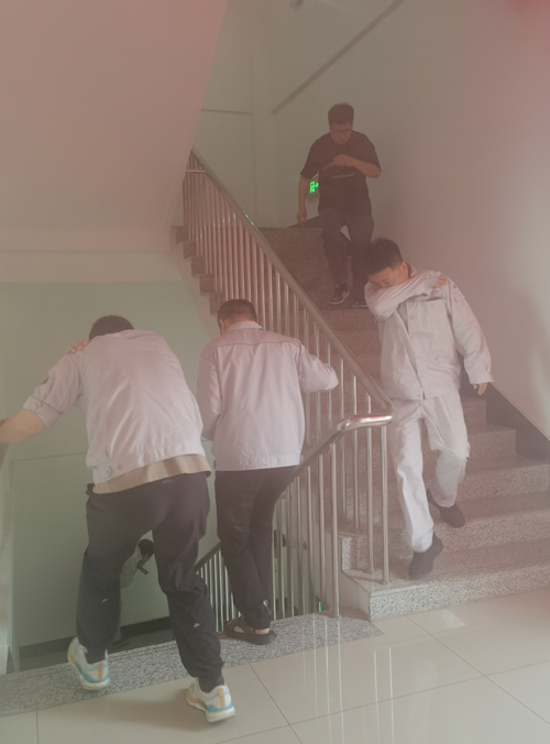 本次演练紧密结合办公大楼火灾特点,各部门严格对照应急预案,科学设计演练科目,涵盖火灾报警、应急响应、安全疏散等全流程环节。演练中,现场模拟办公区域突发“火情”,浓烟迅速蔓延,警报声随即响起,参演员工迅速进入应急状态,严格按照预先规划的疏散路线,保持弯腰低姿,用湿毛巾有效捂住口鼻,以规范的动作和井然的秩序,快速撤离至安全集结区域。整个疏散过程仅用时3分钟,高效实现了“科学、有序、快速、安全”的既定目标,充分展现了员工良好的应急素养与团队协作能力。