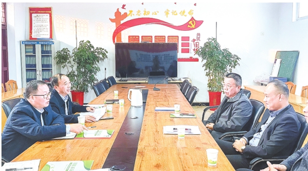 11月17日,省发改委驻兰考县付楼村第一书记欧阳建新(左一)与国耀集团董事长就“股田制”新模式洽谈。