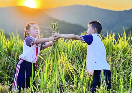 金秋十月,稻浪飘香。武夷山实验小学的孩子们走进金色稻田,开展割稻拾穗劳动课程。在农民的指导下,小稻农们学习传统收割技巧,弯腰体验粒粒皆辛苦的农耕智慧。活动中,学生们用统计图对比收割效率,以贴画创作丰收图景,更通过观察稻穗结构、撰写田野笔记,将劳动教育与科学、语文、美术等学科深度融合。家校协同的实践课堂,让传统文化与自然教育在稻香中生根发芽。 (来源:实验小学)
