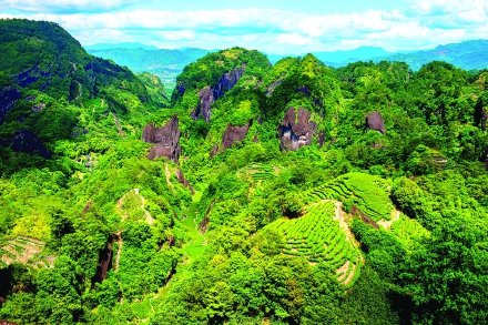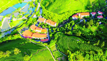 隐匿在山水与茶田的环抱之中的福莲茶庄园,将武夷山青山绿水的独特景观融入其中。庄园坚持有机种植理念,从采摘到制作都遵循古法,最大程度保留茶叶的本真味道。秋日午后,坐在茶室里,一杯清茶在手,看近处茶山披绿,远山如黛,云卷云舒,惬意非凡。