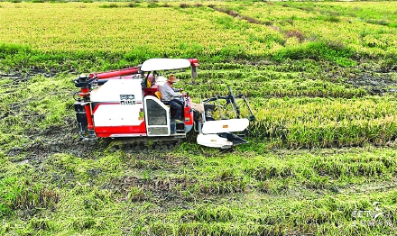 11月7日,金色稻浪中,多台收割机在兴田镇福民农业专业合作社的高标准农田里穿梭,收割再生稻二季。此次丰收的品种“嘉优中科2号”,经市农业农村局技术人员实地测产,平均干谷亩产达350公斤。