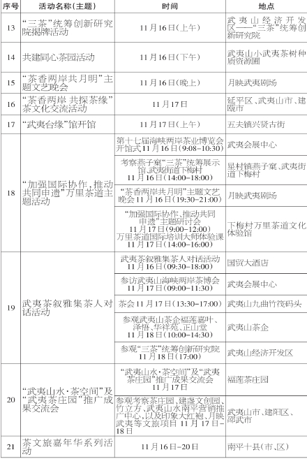 第十七届海峡两岸茶业博览会主要活动安排表