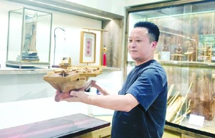 一根根平凡无奇的竹子,在谢宏星的巧手下历经刮青、破竹、启篾等工序,化作逼真的二维码、空间站、福建舰等造型。谢宏星从事竹编艺术已有22年时间。2005年,他正式拜师学艺,师从中国工艺美术大师陈云华,从此踏入了竹编的大门。多年来,他一步步坚持,将武夷竹编申报为省级非遗,并不断探索这门古老技艺与现代生活的融合。他不仅创作大型竹编艺术品,还制作竹编手镯、手机壳、暖手宝、冰箱贴等日常生活用品,让竹编艺术回归普通人的生活。