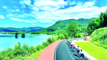 2025年12月30日,中国自行车运动协会公布,2025“中国骑行地图”百条精品路线,其中崇阳溪漫游道骑行路线入选华东地区精品骑行线路。这条路线依偎着崇阳溪蜿蜒展开,是一条将自然风光与人文底蕴完美融合的休闲骑行道。图为游人骑行在漫游道上。(孙开彦摄)