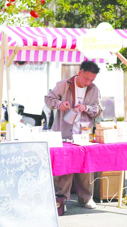 邹志强在演示新式手冲茶。(受访者供图)