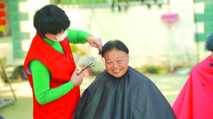 志愿者为老人免费理发(王时新 李佳怡摄)