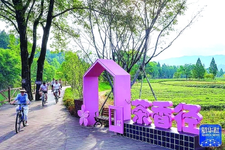上图:7月11日,游人在星村镇生态观光茶园内骑行。