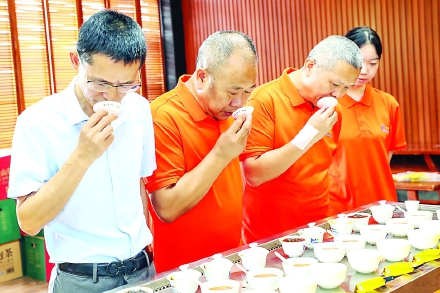 日前,2024年“妈祖杯”民间茶王赛(武夷岩茶)在武夷山香江茗苑开赛。“妈祖杯”民间茶王赛自创办以来,通过发挥妈祖文化的精神纽带作用,为海峡两岸茶企、茶农和茶叶爱好者搭建平台,加强海峡两岸融合发展和两岸友好交流,促进茶文化、茶产业、茶科技的统筹发展。图为专家评委在评茶。(裴礼辉邱汝泉摄)