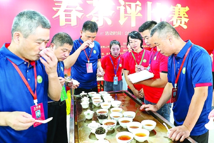 9月9日,武夷山市第二十届春茶评比赛举行。全市共收到茶农茶企选送的大红袍、水仙、肉桂、品种、红茶等茶样,将评出各个品种的特等奖、一等奖和优质奖。图为专家评委在评审武夷岩茶。 (邱汝泉摄)