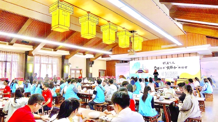 11月16日,由南平市青年联合会主办的“武夷之友”两岸青年“喫茶去”茶文化交流会在我市举办。武夷学院茶与食品学院叶国盛老师、武夷岩茶(大红袍)制作技艺传承人刘安兴老师以及台湾茶艺大师吴德亮老师先后和大家进行了交流和分享两岸茶文化知识及制作技艺。活动中,还举行了第33届“金犊奖”武夷山水品牌设计奖文创大赛颁奖仪式。 (何浩摄)