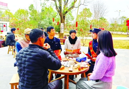 春节将至年味浓,1月22日,武夷街道八角亭社区在社区文化广场举办了一场以“共建共治话平安”为主题的迎新春吃茶话事活动,街道两委、景区派出所、赤石派出所、辖区企业家、共建单位和居民代表围坐一桌,以“吃茶话事”的轻松形式,共话社区平安建设,共迎2025年春节的到来。(林李冰陈健文摄)
