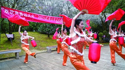 从除夕到元宵,武夷山集结了全市36支群文队伍、600余名演职人员,文艺工作者、文艺志愿者、青少年群体、民间文艺团体和农民群体共同参与演出,举办“福海扬帆福行天下”“浪漫武夷风雅茶韵”“巳巳如意·梅乡雅韵”等39场文艺演出活动,呈现80余个独具特色的原创节目,涵盖舞蹈、音乐、戏曲、乐器等多种艺术形式,线上线下超2万人次参与互动讨论。