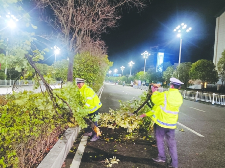 3月3日下午,我市遭遇强对流天气侵袭,城区部分路段出现树木倒伏、杂物堆积等险情。市公安局交警大队迅速启动应急响应,铁骑中队率先赶赴重点区域疏导交通,多组巡逻警力同步展开全域险情排查。经4小时连续奋战,当日19时受影响路段全部恢复通行。 (黄晓辉摄)