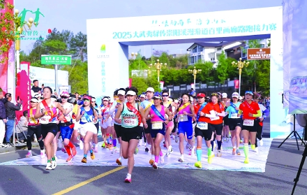 4月13日,2025“大武夷驿传”崇阳溪漫游道百里画廊路跑接力赛在我市活力开跑,来自全国各地的跑步爱好者齐聚武夷山,以团队接力的形式穿越45.84公里的“百里画廊”,用脚步丈量美丽风景,用汗水挥洒拼搏激情。 (吴骁 吴明凇 伍凯文摄)