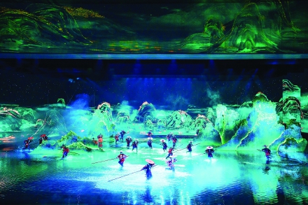 是的,沉浸感,在《月映武夷》可以沉浸式体验黑科技集群。“我们特意增强了沉浸感的设计。”冯岩说,“在结构和空间上,采用留黑形式控制多媒体节奏,避免视觉疲劳;通过月相、影像与水反光结合等方式,将抽象概念具象化;在270度全景式舞台设计中,克服三面屏技术难点,利用裸眼3D和空间模拟减小视觉差,兼顾不同角度观众的观看感受。”