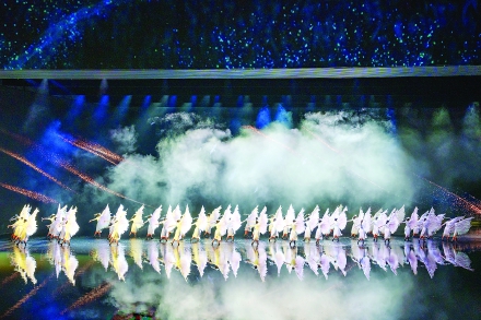 《白鹭翩跹》:舞者化身白鹭,以“0重力”舞姿演绎自然灵韵,水袖翻飞间与数控雨丝共谱“天人交响”。