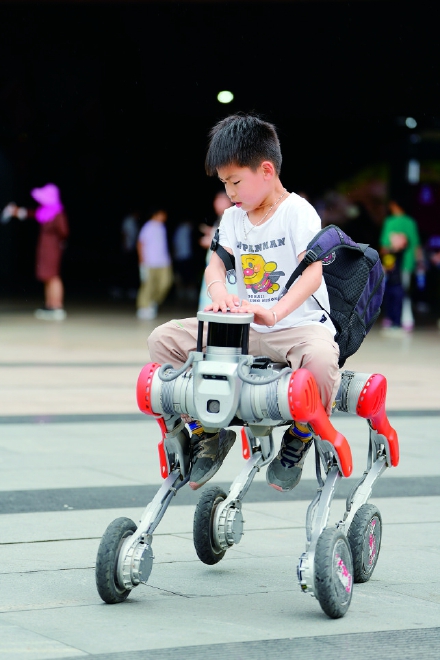 智能机器狗化身“安全卫士+社交达人”,巡逻疏导、合影卖萌、语音导览样样精通。 (杨懿)