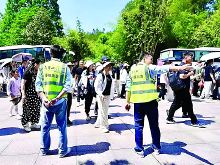 设置15个“小红袍”青年志愿服务驿站,配备急救药品、雨衣热茶等暖心物资,组织840余名青年志愿者和12名外语翻译志愿者为游客提供旅游咨询、客流疏导、景点指引、文明劝导等服务,服务游客超5万人次。