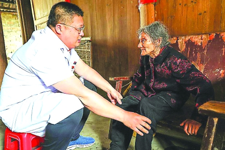 5月15日,武夷山市立医院医生在吴屯乡大际村为重度残疾人余带娣问诊。在第三十五次全国助残日来临之际,为传递温暖,助困助弱,市残联与市立医院联动,到吴屯乡为14户重度残疾人上门义诊。 (邱汝泉摄)
