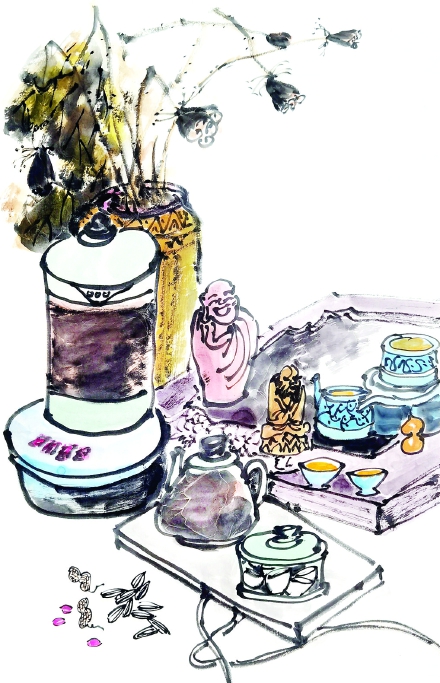 品茶时光(国画)2>