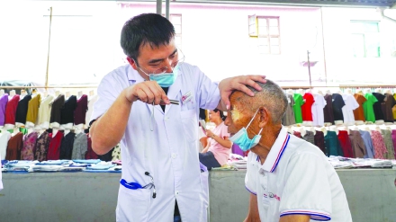 6月14日,正值吴屯乡集贸市场的圩日。一大早,武夷山公立总医院组织多科室医务人员通过“流动医院”巡诊车来到乡内集贸市场“摆摊设点”,将优质医疗资源送到村民家门口,为当地群众送上暖心健康关怀。(林李冰 王鹏靖摄)