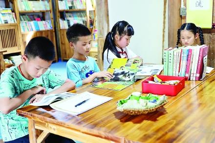 近日,城村村小学生在城村公益书屋看书学习。城村公益书屋是由呦呦书屋联合社会爱心力量,用60天时间将城村废旧民房改造而成,成为该村中小学生假日读书的好去处。 (邱汝泉摄)