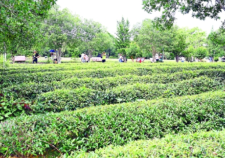 6月25日,游客在武夷星茶业有限公司茶叶种质资源圃参观。