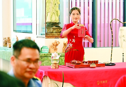 6月25日,武夷星茶业有限公司工作人员为游客展示茶艺。