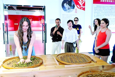 外国游客体验武夷茶文化魅力。(张筱惜摄)